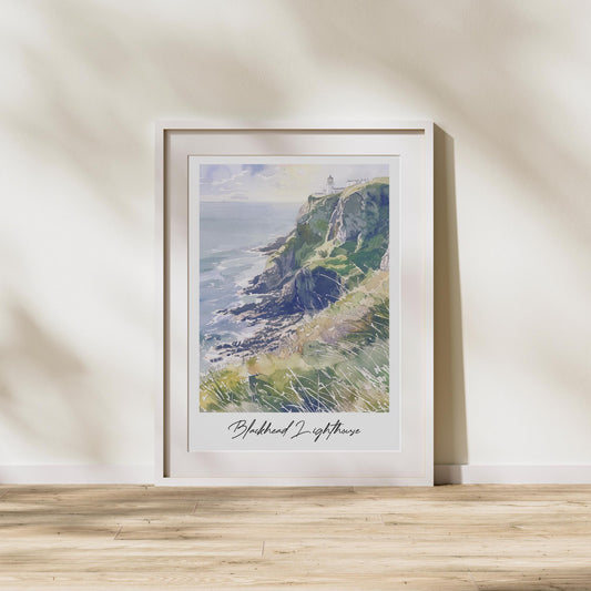 Blackhead Lighthouse Whitehead Travel Print, Frameless, Wall Art, Northern Ireland